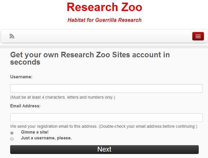 However, it struck me that many people would not know how to start. Sure, there are lots of free blogging platforms, but if you want to use some of the neat tools that make the guerrilla researcher’s life so much easier, you pretty much have to roll your own. But who knows how to do that? Well, I do. So, as a weekend breakfast project, I created ResearchZoo.net with the tagline “Habitat for Guerilla Research”.